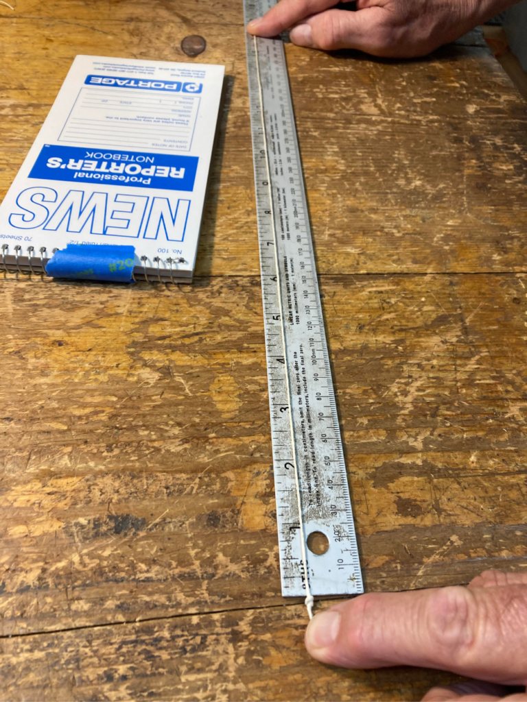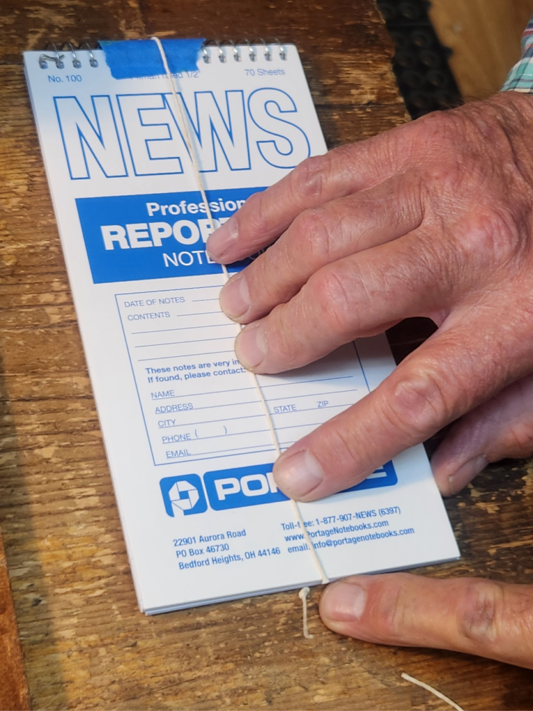 - string with knot against edge of notebook